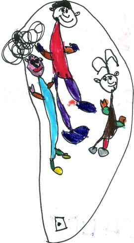 In occasione del compleanno di papà ho deciso di realizzare una rappresentazione iconografica della nostra famiglia... iconoche!!! Dai papà, ma scrivi bene!!! Comunque... in azzurro la mamma (come si evince chiaramente dalla folta capigliatura ricciola), in rosso papà (come si evince chiaramente dalle orecchie a sventola) ed infine io. Da notare che siamo in casa ed in basso è possibile vedere la porta del nostro appartamento.